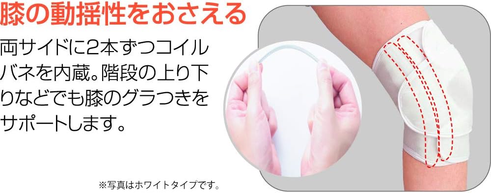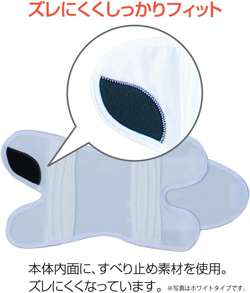 摩擦係数の高い滑り止めを採用することでズレにくい設計。両サイドに左右2本ずつコイルバネを内臓。薄手で通気性に優れた素材を採用。